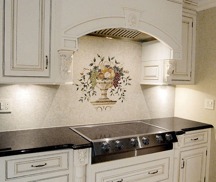 Create fully custom designed backsplash. You pick the colors, design, pattern, everything. Ask about our Sports Team logos for backsplash too!