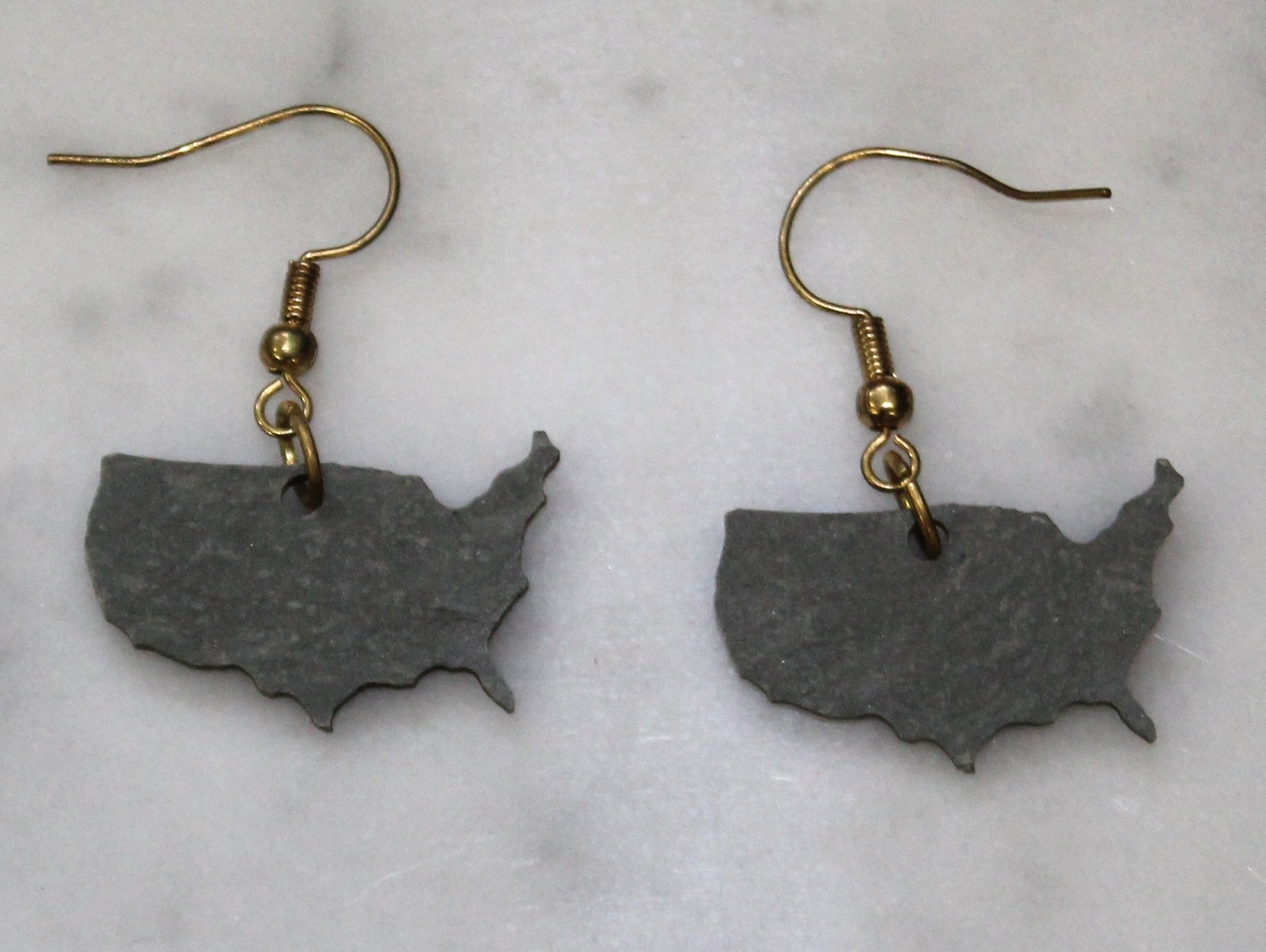 Bison Hill Stonecrafts is the only place in the world you can get natural slate earrings. They are guaranteed to be the most unique set of earrings you have ever owned and bound to be a conversation starter whenever you step out in them. They are available with either silver plated or gold plated dangle hardware.